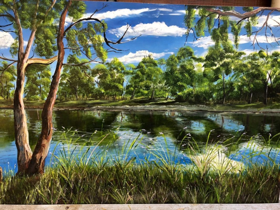 Description: I just finished this painting of the Murrumbidgee in NSW. The Murrumbidgee has a special significance for me as I spend many hours fishing from its banks with my brothers and father in my childhood. Having only started painting 2 years ago at the age of 57 I have ruined many a canvas on a fast learning curve but the MJS Art School has helped me enormously. The water and shadows were a real challenge and I learnt a lot from the process.