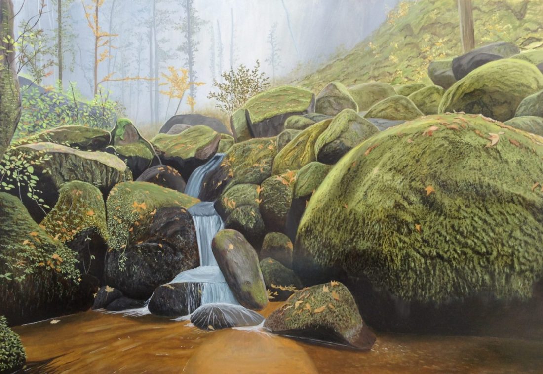 Description: This picture is taken from a photo of an friend. It´s called the Gaishöll-Waterfall/Germany. This is my first landscape in oil!
