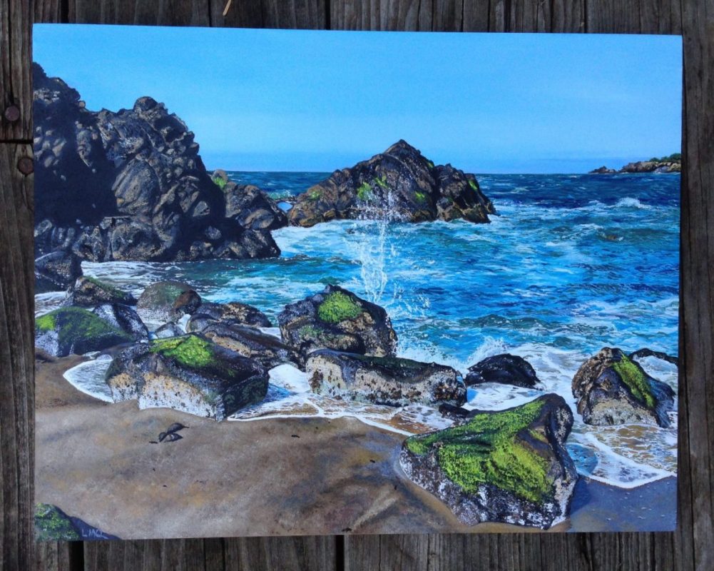 Description: Painted from a photo I took at the Oregon coast. Oils over acrylic block in. On 11by14 inch MDF artist panel.
