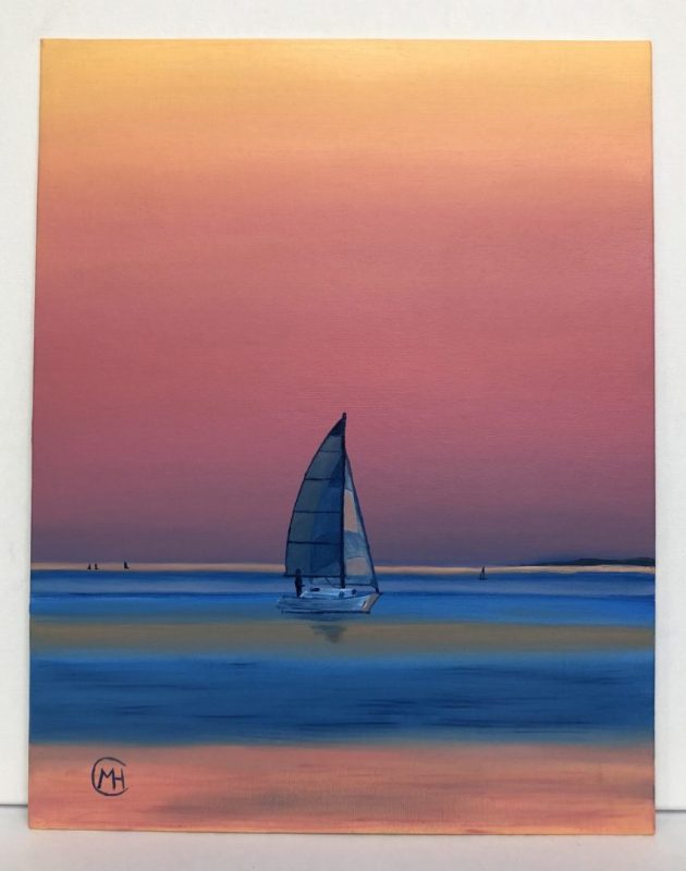 Description: oil on 12”x16” canvas panel The painting depicts a summer sunset in Lake Balaton (Hungary). I tried to illustrate how the rays of the sinking sun stain the calm, quiet water.
