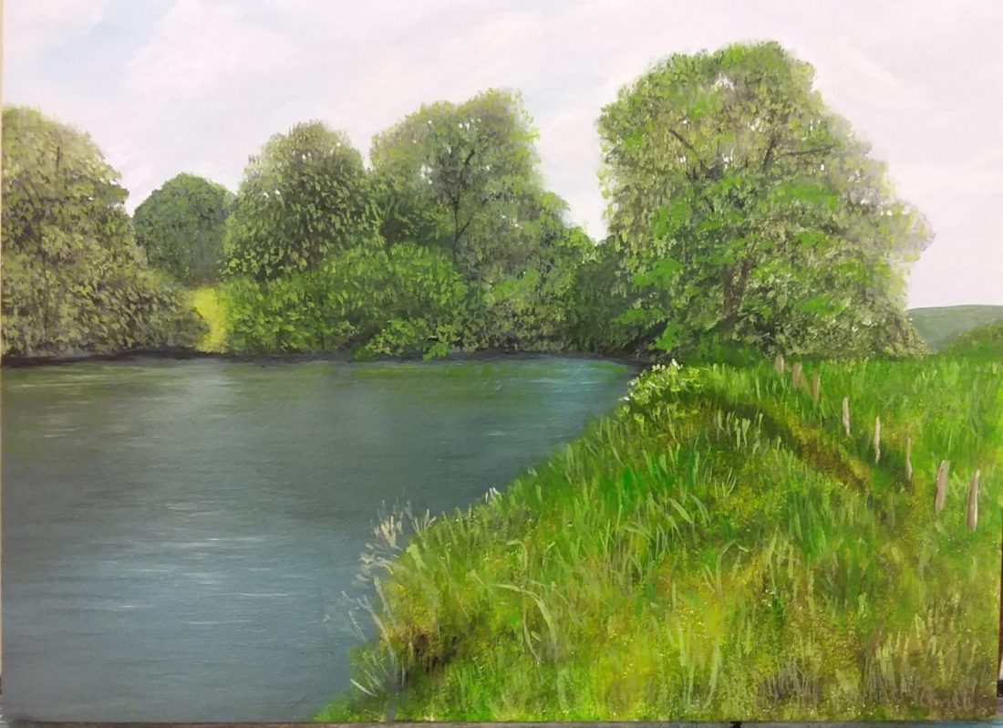 Description: First painting submitted for contest entry, river scene done with acrylic blocking and final production in oils.