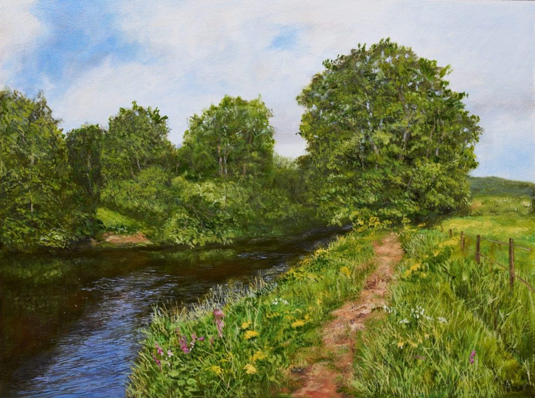 Description: Tried to capture the atmosphere around a slowly flowing river. Mostly alkyd oils on MDF panel 40 x 30 cm, blocking in: oils