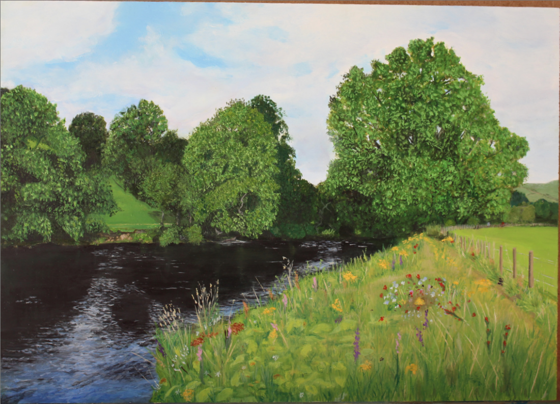 Description: My interpretation of the landscape scene puts me in mind of the many walks I have taken in the countryside, and I hope I have conveyed the feeling of tranquility adequately. Oil Medium on 25 x 35 cm gesso board. This is a landscape scene set as an interim progress exercise by the MJS online art school, and the image belongs to the school.